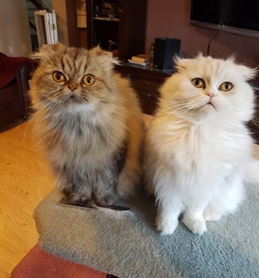Les chats ont toujours fait partie de ma vie, mais depuis l'achat de mon premier Persan en 1988, j'ai été littéralement séduite par cette race et depuis plus de 17 ans, ma passion n'a fait qu'augmenter non seulement pour le Persan, mais aussi ses proches cousins : l'Himalayen, l'Exotic et le Foldex, car ils possèdent tous le même tempérament adorable .