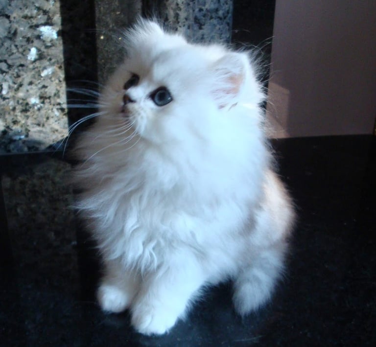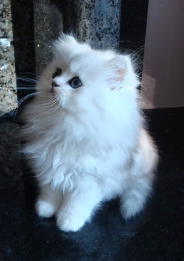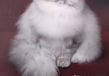 Poil long du Persan, oreilles pliées, non couchées complètement, tête bien ronde.