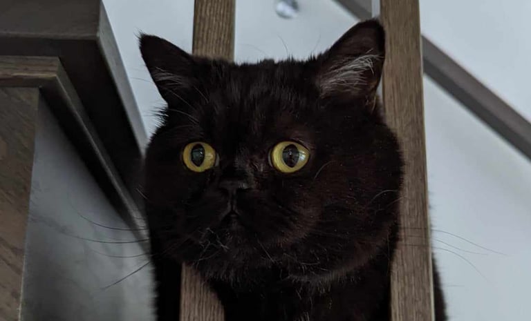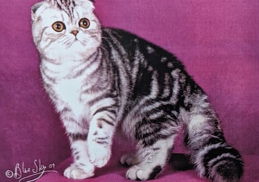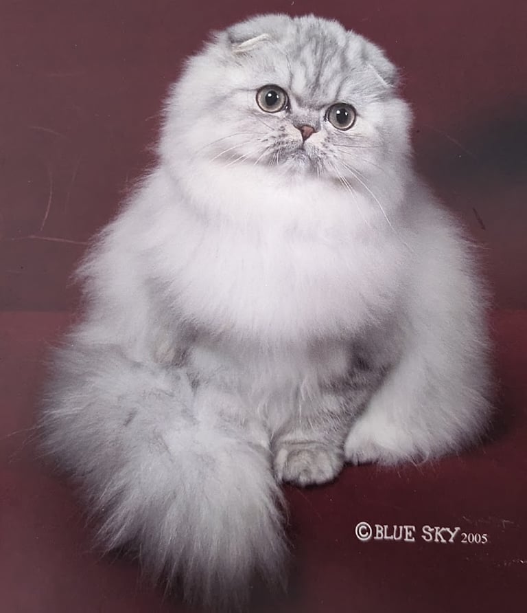 Oreillees pliées, fourrure courte très dense avec sous-poil du Persan, mais sans la longueur, donc, plus simple à entretenir.